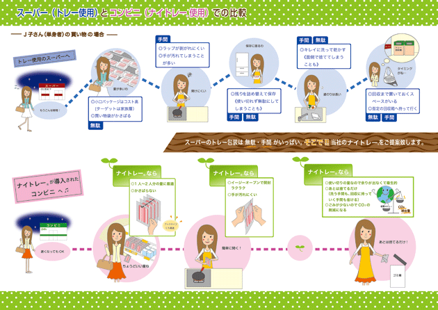 スーパー(トレー使用)とコンビニ(ナイトレー使用)での比較